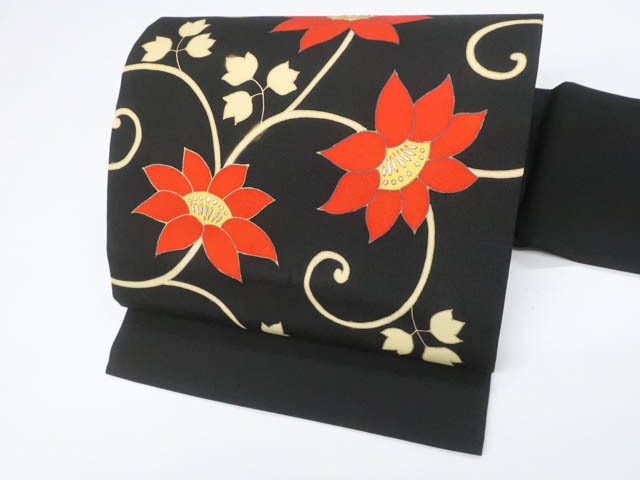 - 《古美術京松》リサイクル着物 九寸名古屋帯 昭和レトロ お太鼓柄 花 正絹 kyo7b09-224