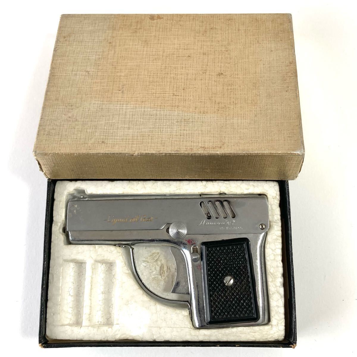- ヴィンテージ喫煙具ピストル型ガスライター☆昭和レトロ当時物 モデルガン風ライター喫煙グッズ金属製 箱付き