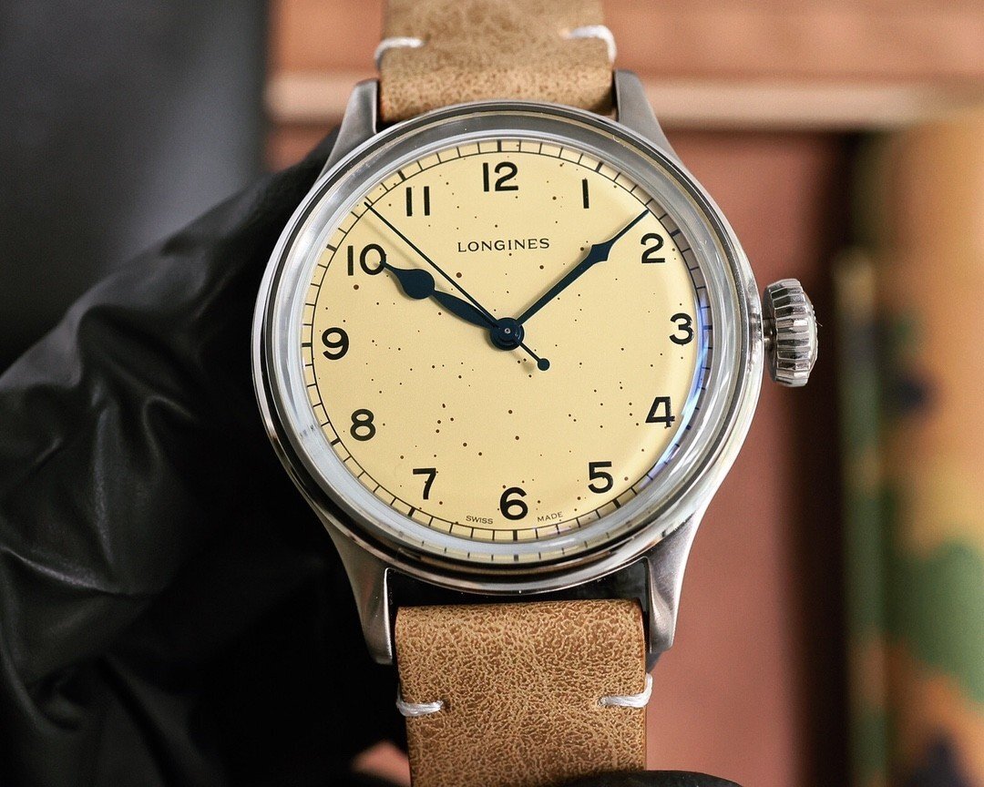 - LONGINES ロンジン ヘリテージ ミリタリー ベージュカラー文字盤 自動巻き 腕時計 38.5mm メンズウォッチ L2.819.4.93.2