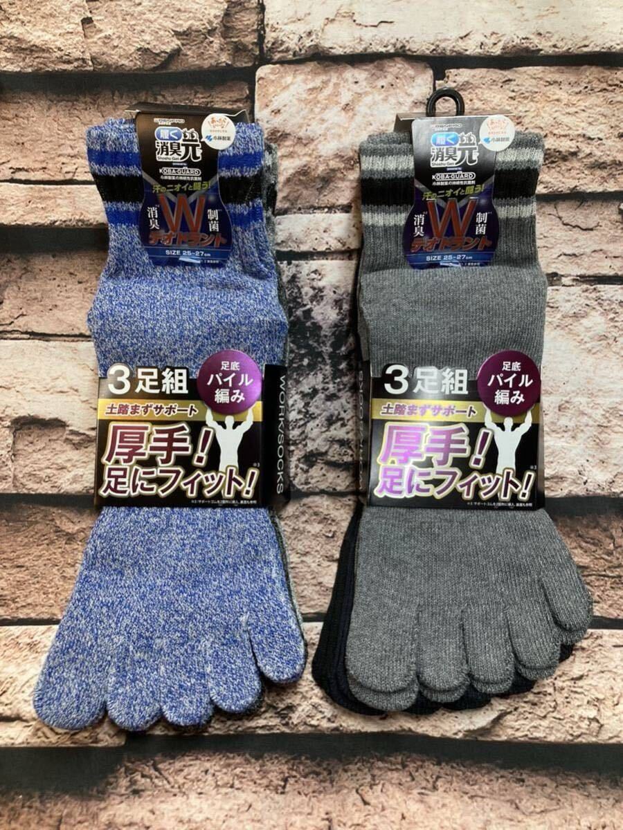 - 『3足組』小林製薬【履く消臭元】厚手、足底パイル編み 土踏まずサポート付きメンズ綿混5本指スニーカーソックス