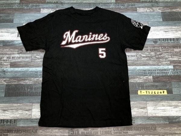 - 千葉ロッテマリーンズ メンズ 5番 イシミネ ラメプリント 半袖Tシャツ L 黒