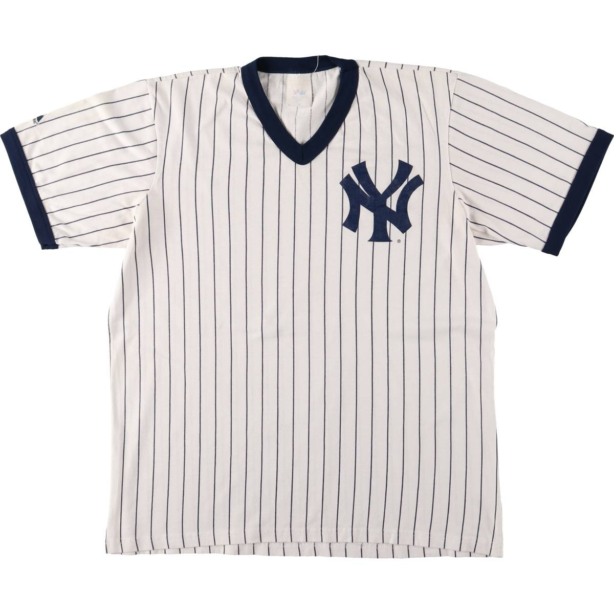 - 古着 MAJESTIC MLB NEW YORK YANKEES ニューヨークヤンキース ストライプ柄 リンガーTシャツ USA製 メンズXL相当 /eaa587750