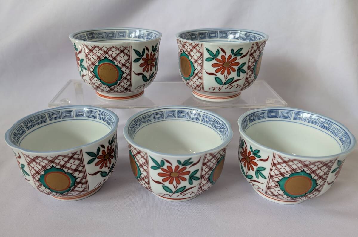 - 有田焼 哲山 呉須赤絵玉鉢 赤絵 中鉢 5個 *金彩赤絵 輪花鉢