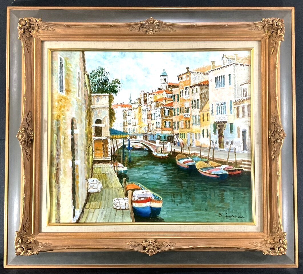 真作■油彩■日高蔀■『運河ぞいの家並』■10F大型・街逸品 ・ル・サロン会員 パリ市文化功労賞 ■額付絵画 7拍卖