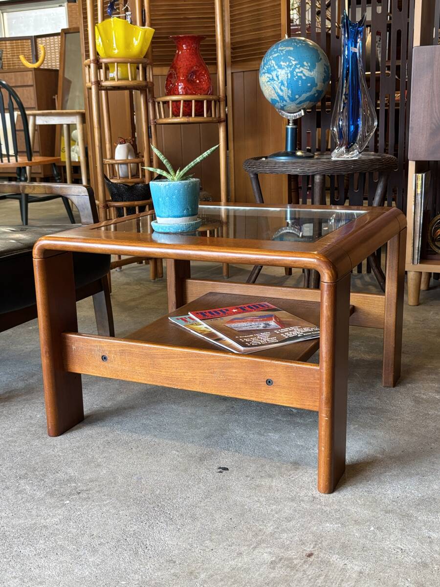 - ガラス天板付きローテーブル ガラストップ ローテーブル ヴィンテージ ビンテージ コーヒーテーブル センターテーブル