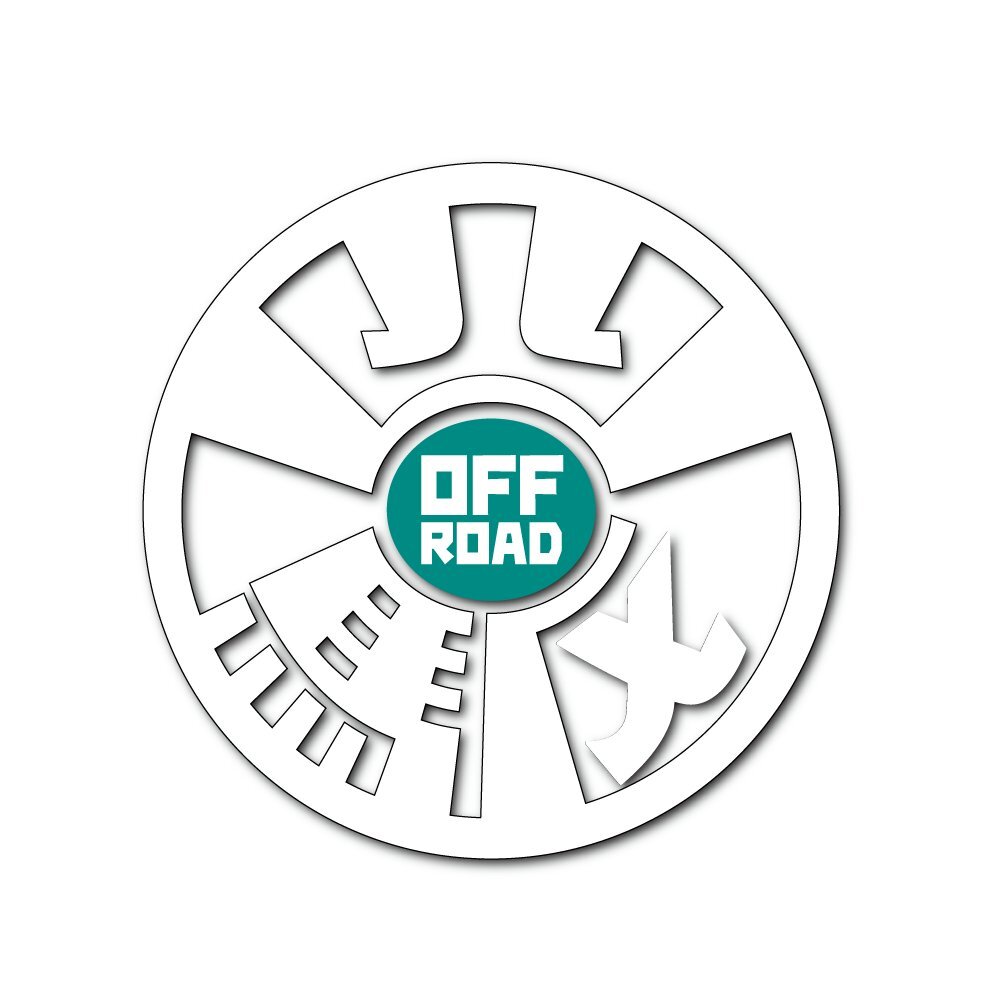 - (透明) 四駆ステッカー 丸型 ((オフロード/ホワイト×ターコイズ)) 4WD 四輪駆動 オフ車 オフロード ワンポイント
