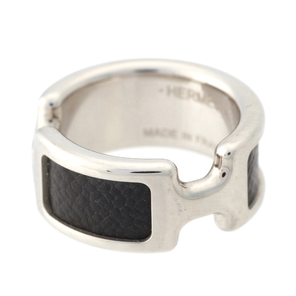 - HERMES エルメス オランプPM リング 指輪 ブラック シルバー XS #A3665