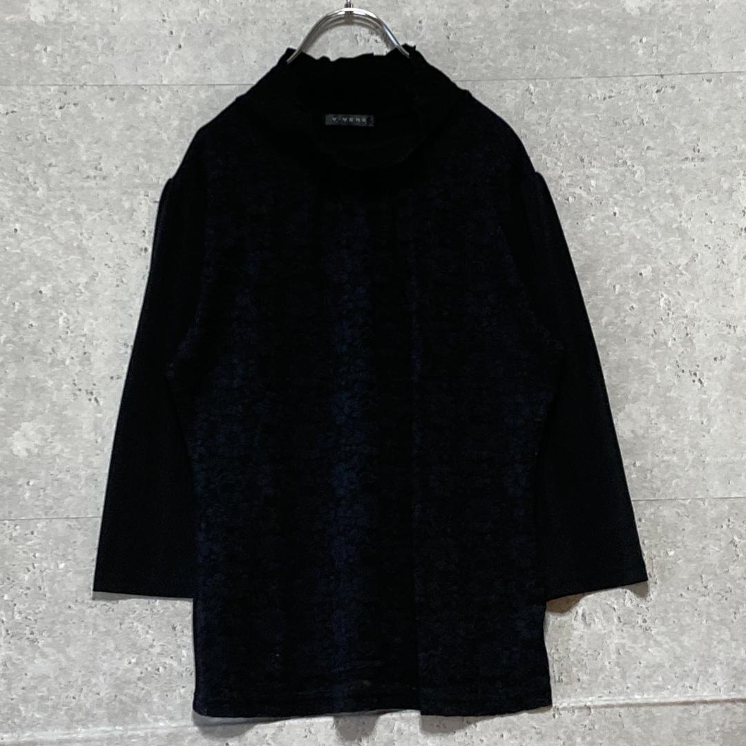 - 【Vivere】ビブレ(LL)ハイネック花柄レースカットソー*伸縮性*透け感*黒