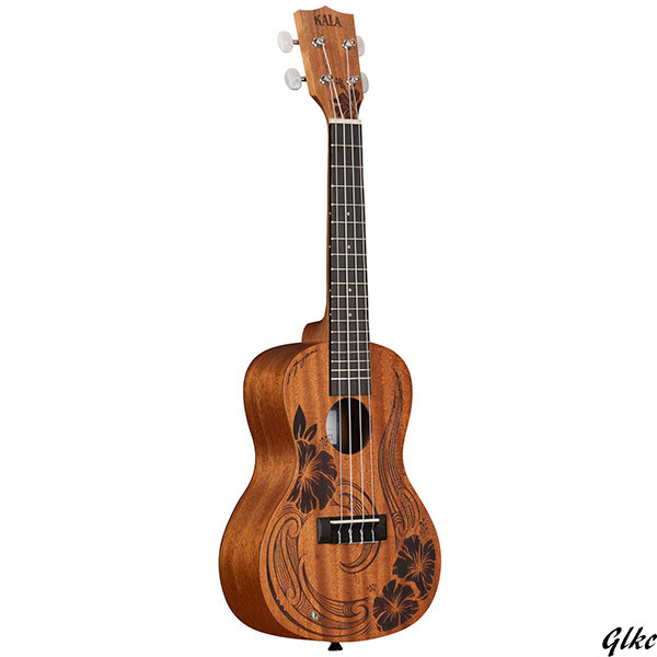 - 【コンパクトサイズで収納や持ち運びも便利】 マホガニーボディウクレレ 初心者向け マオリデザイン ハイビスカス装飾 アウトドア演奏