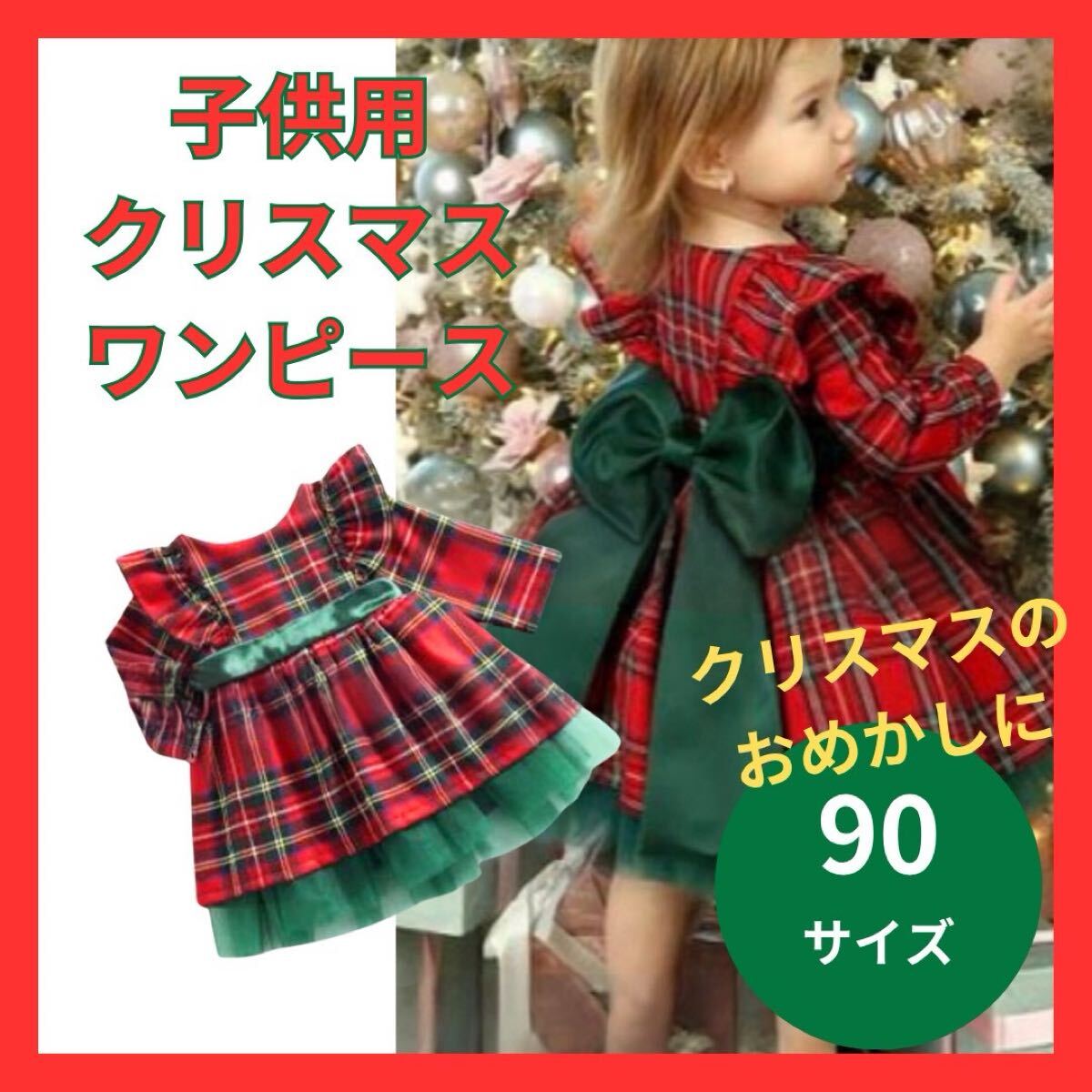 - 子供用クリスマスワンピース 90サイズ チェック柄 ワンピ キッズ 子供服 衣装 ワンピース クリスマス ハロウィン 女の子