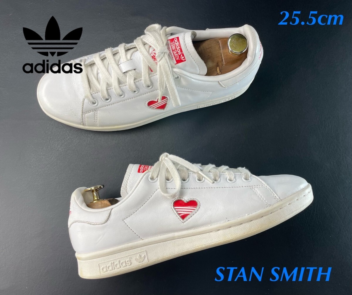 - 名機降臨!限定バレンタインパック!ストライプハートデザイン!アディダス【スタンスミス】レザースニーカー!白×赤 25.5cm/US8.5