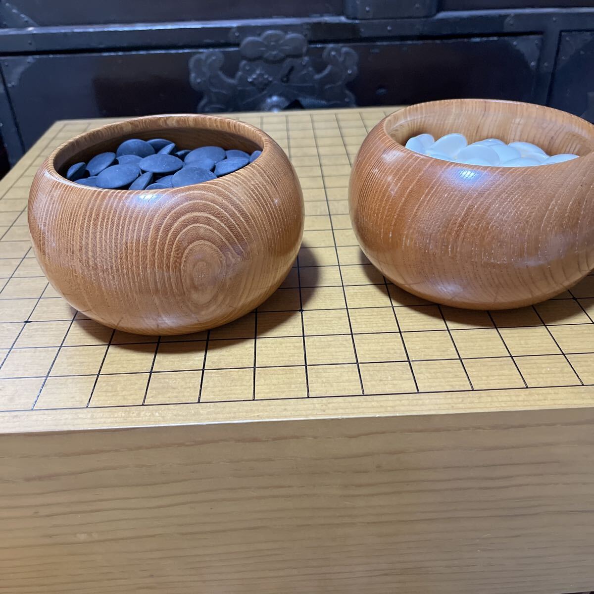 - 碁盤と碁石 本蛤碁石と那智黒碁石 本物
