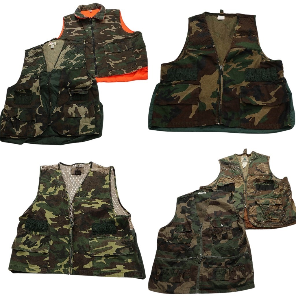 > 古着卸 まとめ売り 迷彩柄 ベスト ジャケット 6枚セット (メンズ L /XL /2XL ) フィッシング フルジップ NC2210 1円スタート