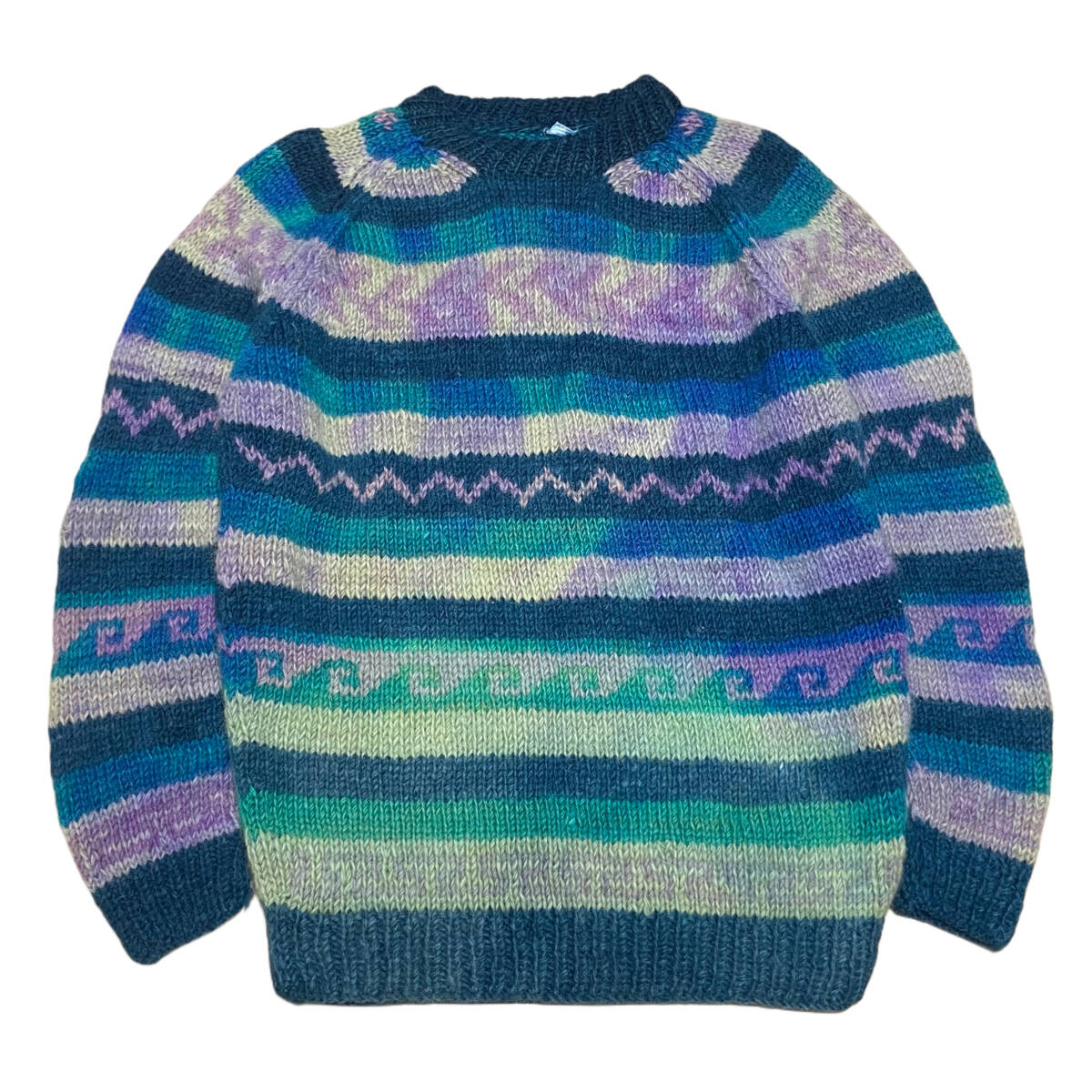 - 希少 L【90s ビンテージ ネパール タイダイ ボーダー ざっくり ハンドメイド ニット】アメリカ USA エクアドル 80s
