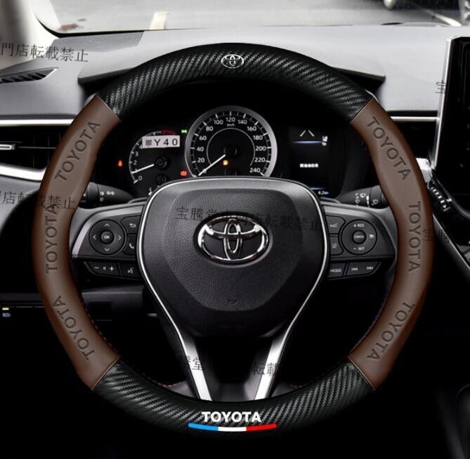 - トヨタ専用 ハンドルカバー ステアリングカバー 円型 本革 カーボン調 ブラウン