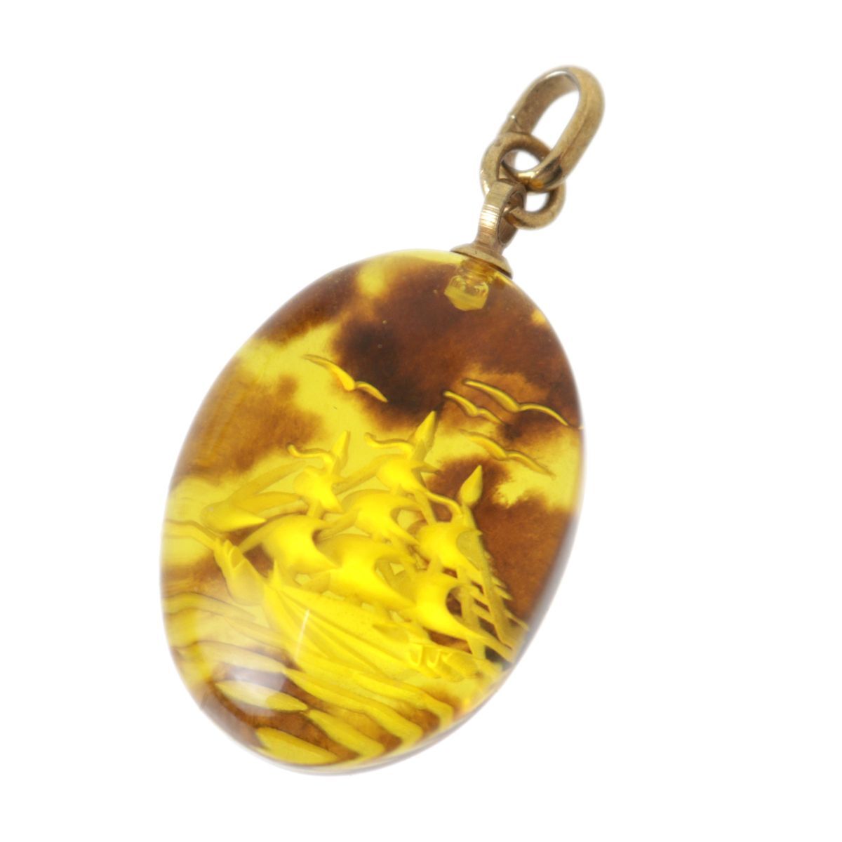 - 張りべっ甲細工 帆船 ペンダントトップ 本べっ甲(裏面の一部のみ) 全長約39mm 重量約4.1g NT Bランク