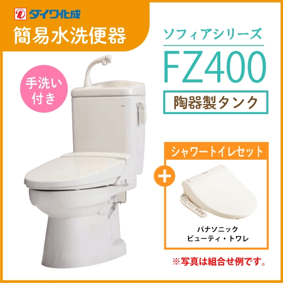 - 簡易水洗便器 簡易水洗トイレ クリーンフラッシュ「ソフィアシリーズ」 FZ400-H00(手洗付)・ビューティートワレセット ダイワ化成