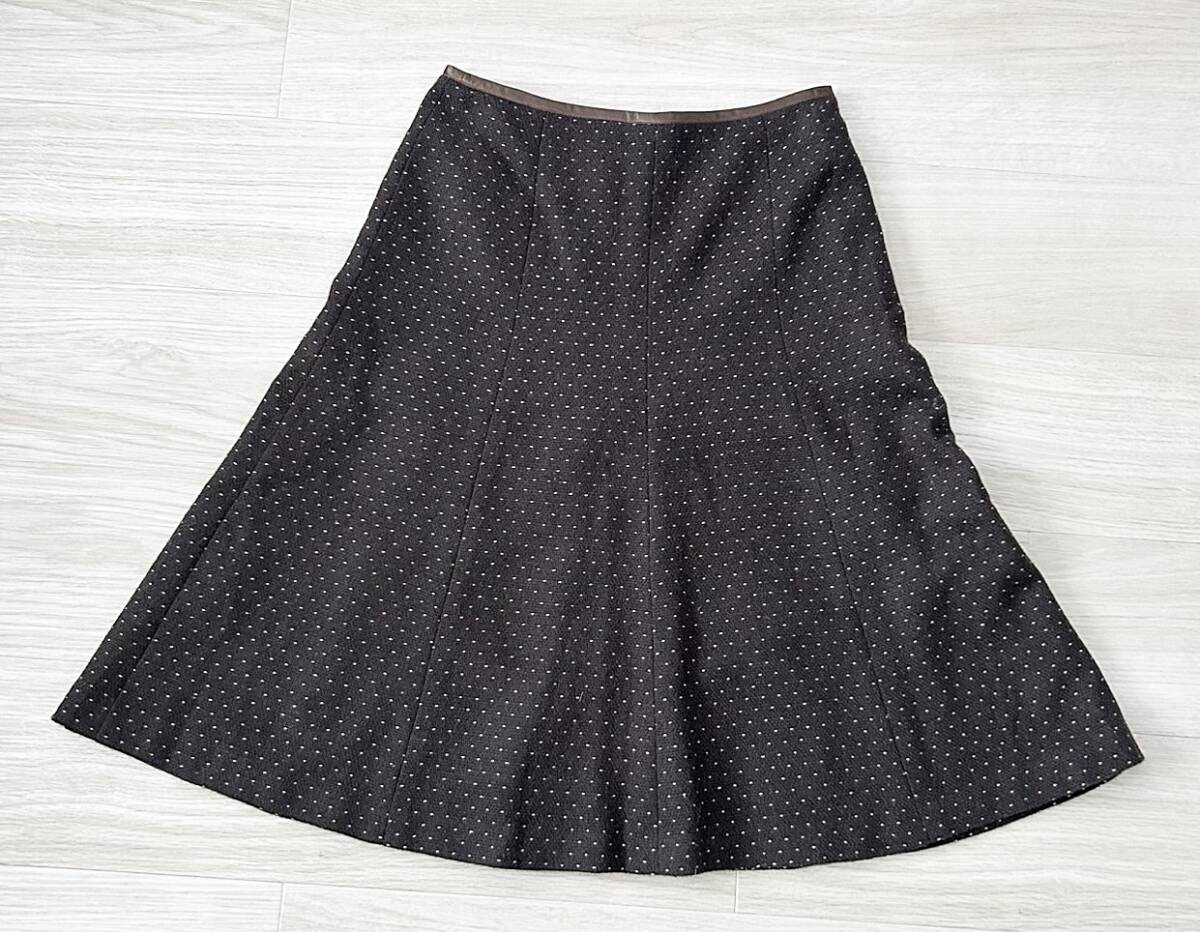 - 送料無料♪HusHush フレアスカート ひざ丈 ウール混 ブラウン地 Mサイズ 秋冬 ハッシュアッシュ