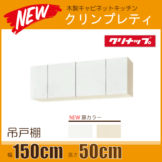 > 吊戸棚 クリンプレティ 幅:150cm 高さ:50cm WGTS-150,WG4V-150 幅:1500mm 高さ:500mm クリナップ ★