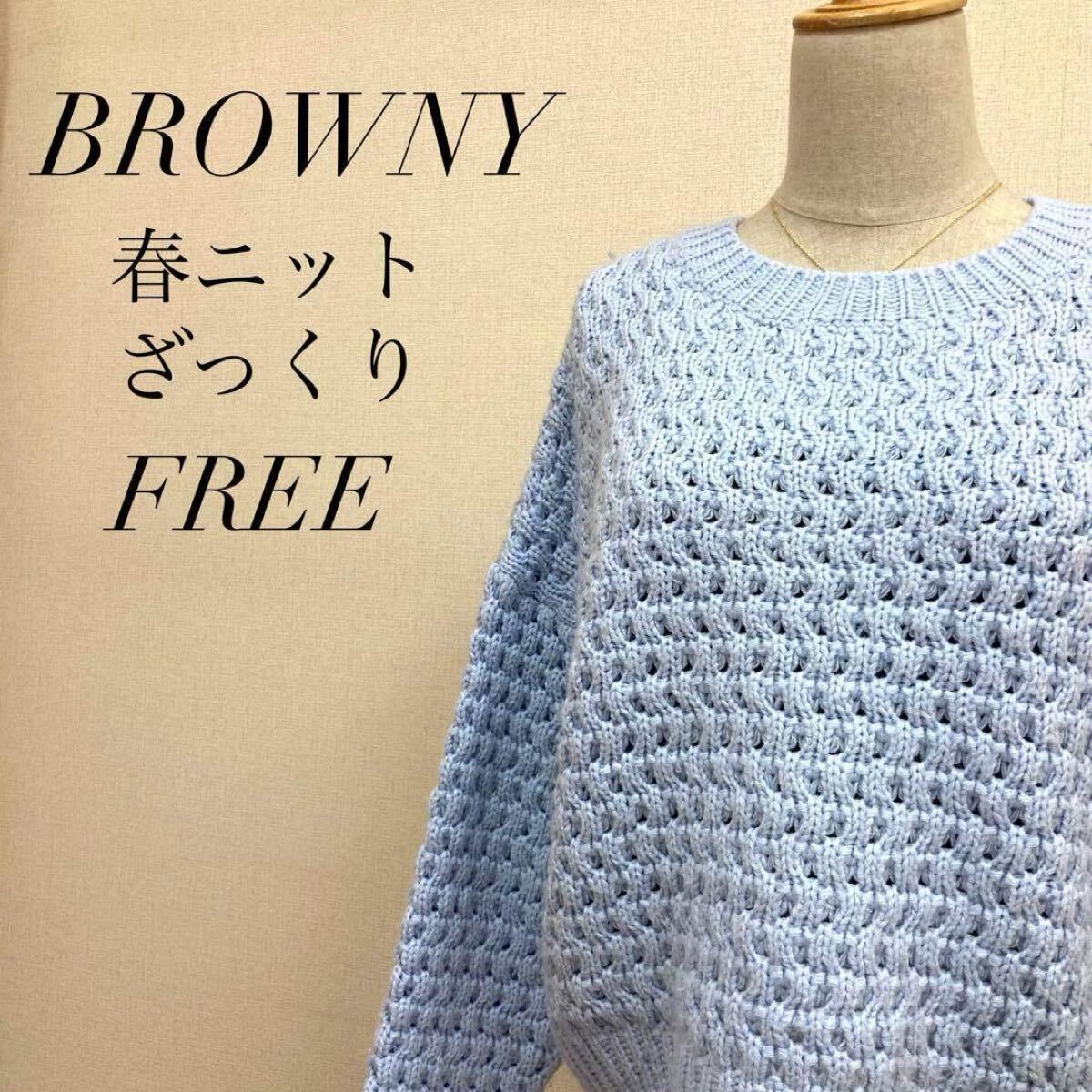 - T ブラウニー 長袖丸首ケーブルニット スプリングニット 春ショート丈 ライトブルー ユニセックス フリーサイズ