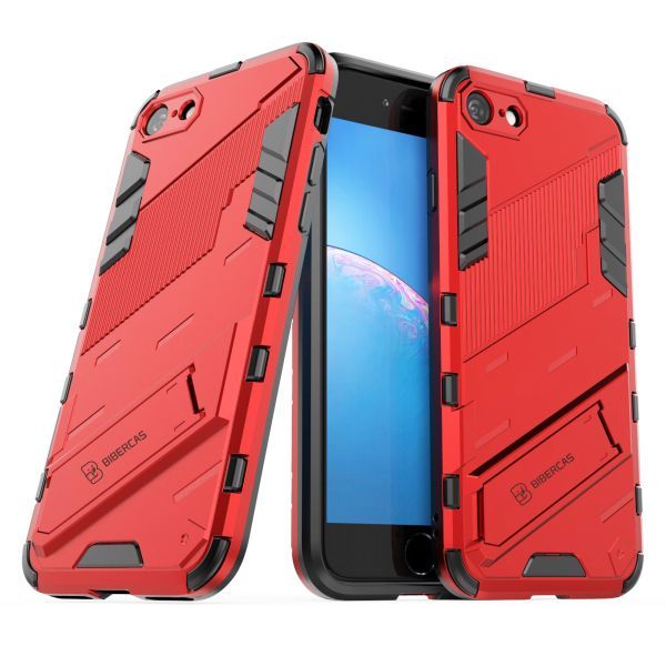 - B 赤 iPhone SE3 (2022) iPhone SE2 (2020) ケース 本体 カバー 画面 保護 守る アイフォン 米軍 丈夫 耐衝撃 頑丈 スタンド ホルダー 最強