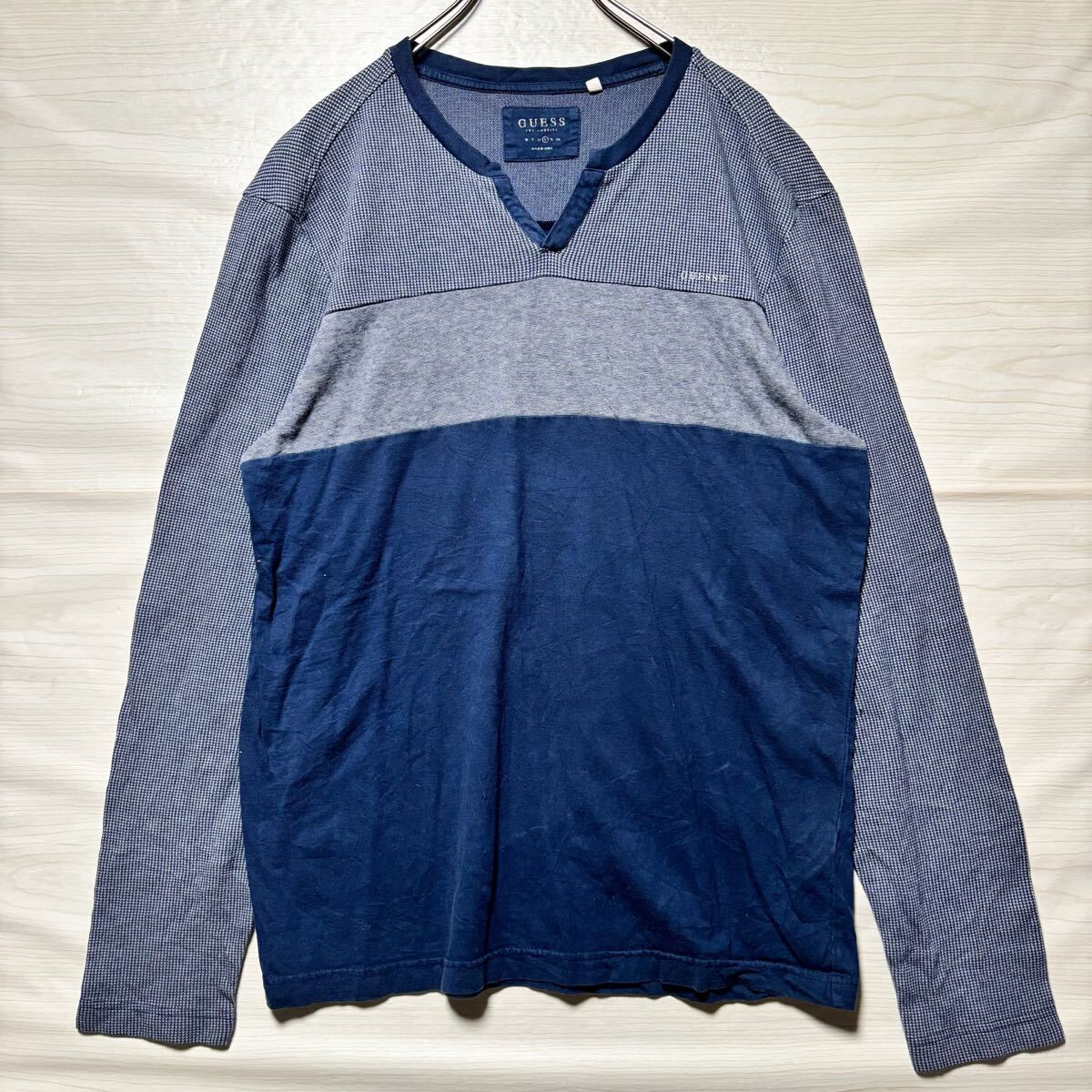 - GUESS ゲス ロンT 長袖Tシャツ 長袖カットソー Vネック サイズL ネイビー 紺色 コットン メンズ トップス (31)