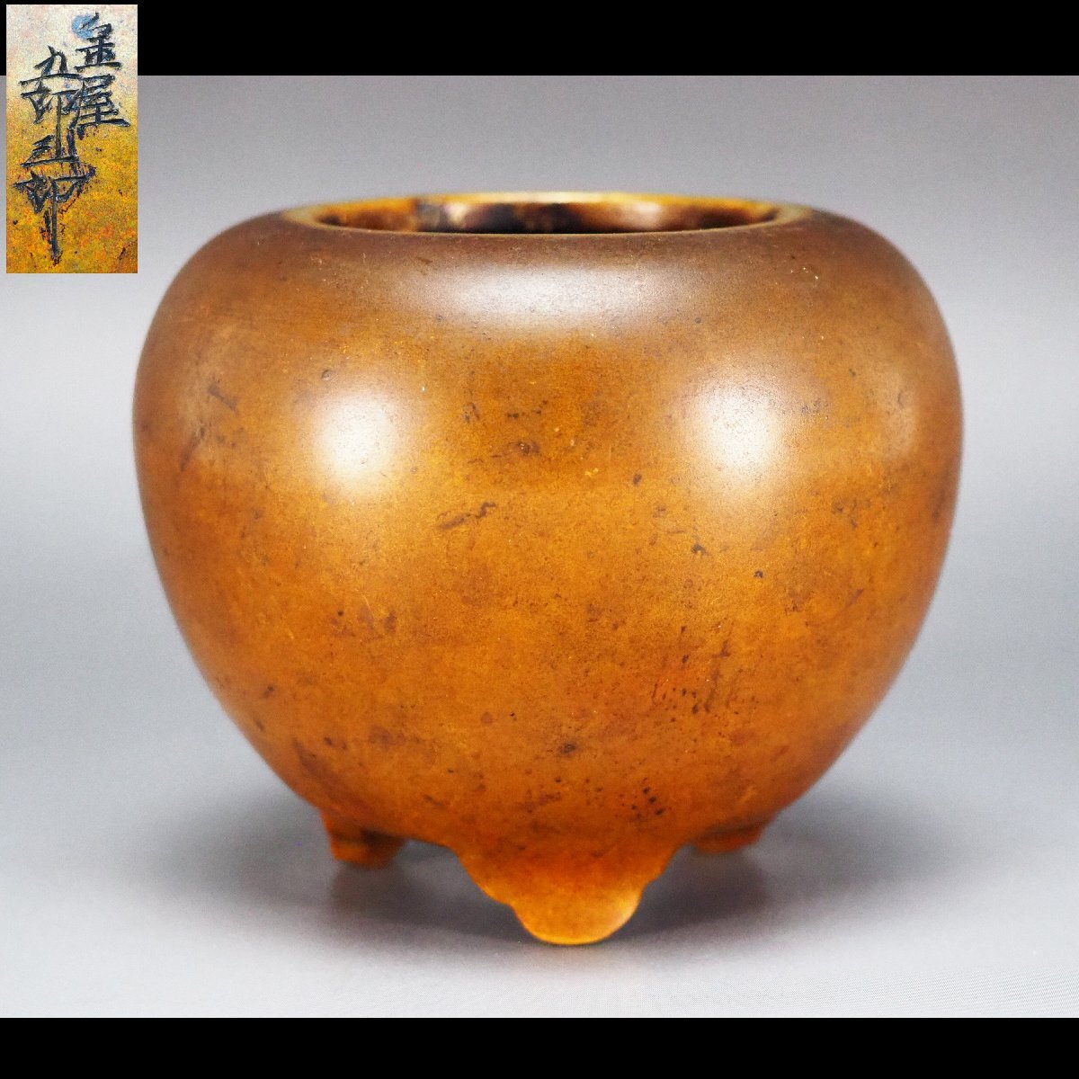 > 【治】『金谷五郎三郎』作 唐銅製 小振 香炉☆幅 8.4cm 火入 莨具 灰皿 灰落(検索:中川浄益 金谷五郎三郎 金工 亀文堂 本間琢斎) OH32