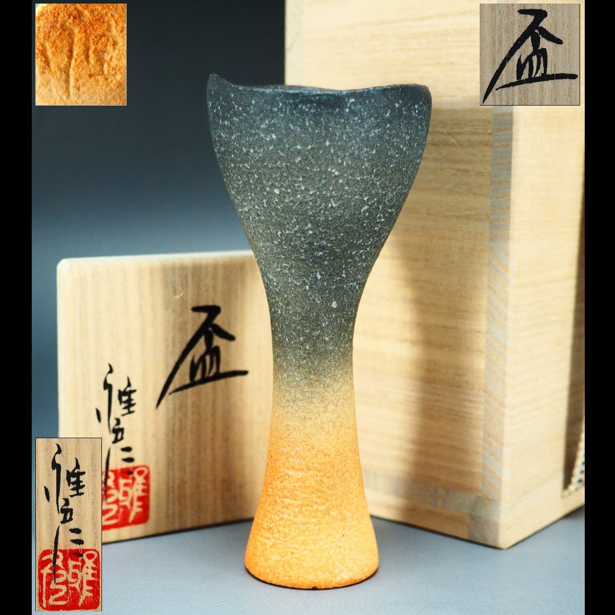 - 【治】『市野雅彦』作 丹波焼 盃☆共箱 猪口 脚付杯 馬上杯 酒器 ぐい呑み (検索:市野信水 森本陶谷 正元直作 大西雅文) 本物保証 OH19