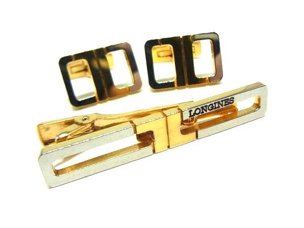 - ■美品■ LONGINES ロンジン ネクタイピン カフスボタン カフリンクス アクセサリー 2点セット ゴールド系×シルバー系 DJ1888