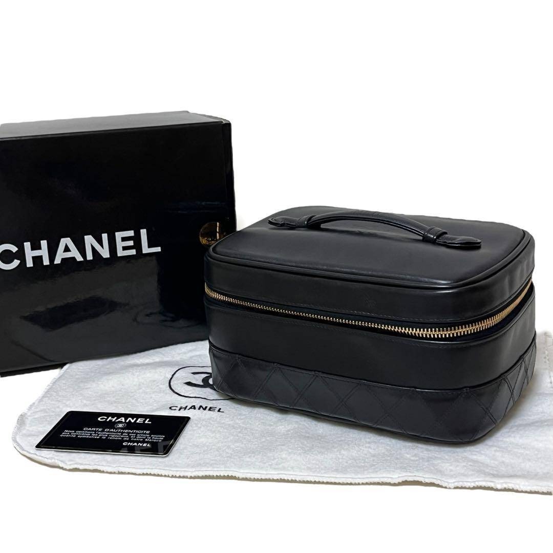 - CHANEL シャネル 横型バニティバッグ 化粧ポーチ ビコローレ ラムスキン ブラック 黒 A01618 良品
