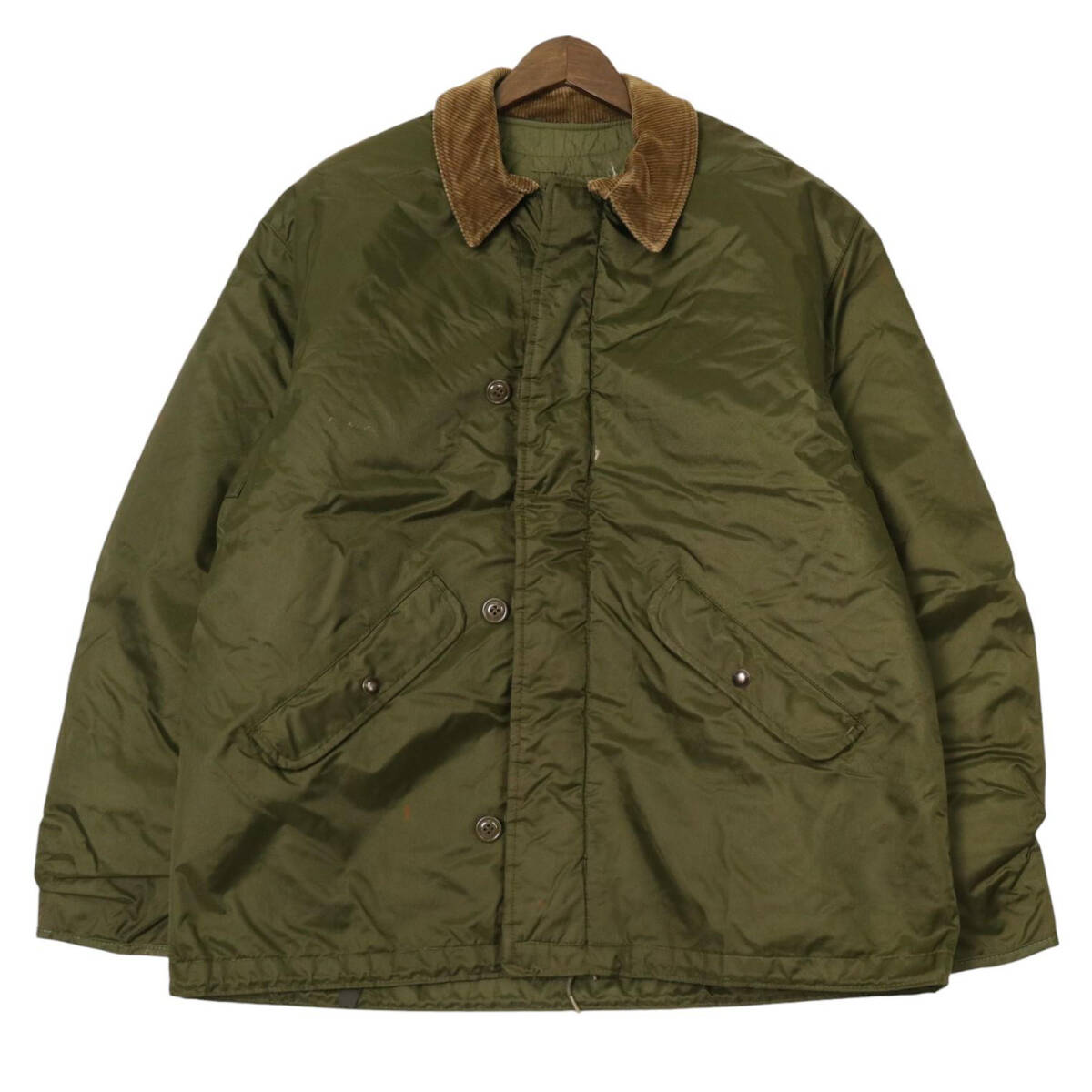 > 80年代 米軍実物 U.S.NAVY A-1 ナイロン デッキジャケット ミリタリー オリーブ (メンズ XL相当) 中古 古着 A2175
