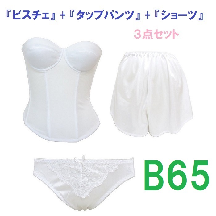 - B65/M/M・白◆ブライダルインナー ビスチェ&タップパンツ&ショーツ 【3点セット】 新品