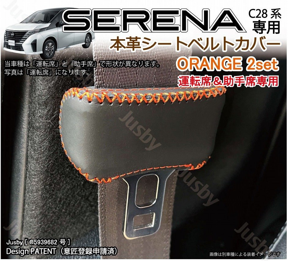 > 新型セレナ C28用 本革シートベルトカバー (運転席&助手席用) (オレンジステッチ) SERENA 本皮レザーカバー パーツ 日産 傷&異音防止