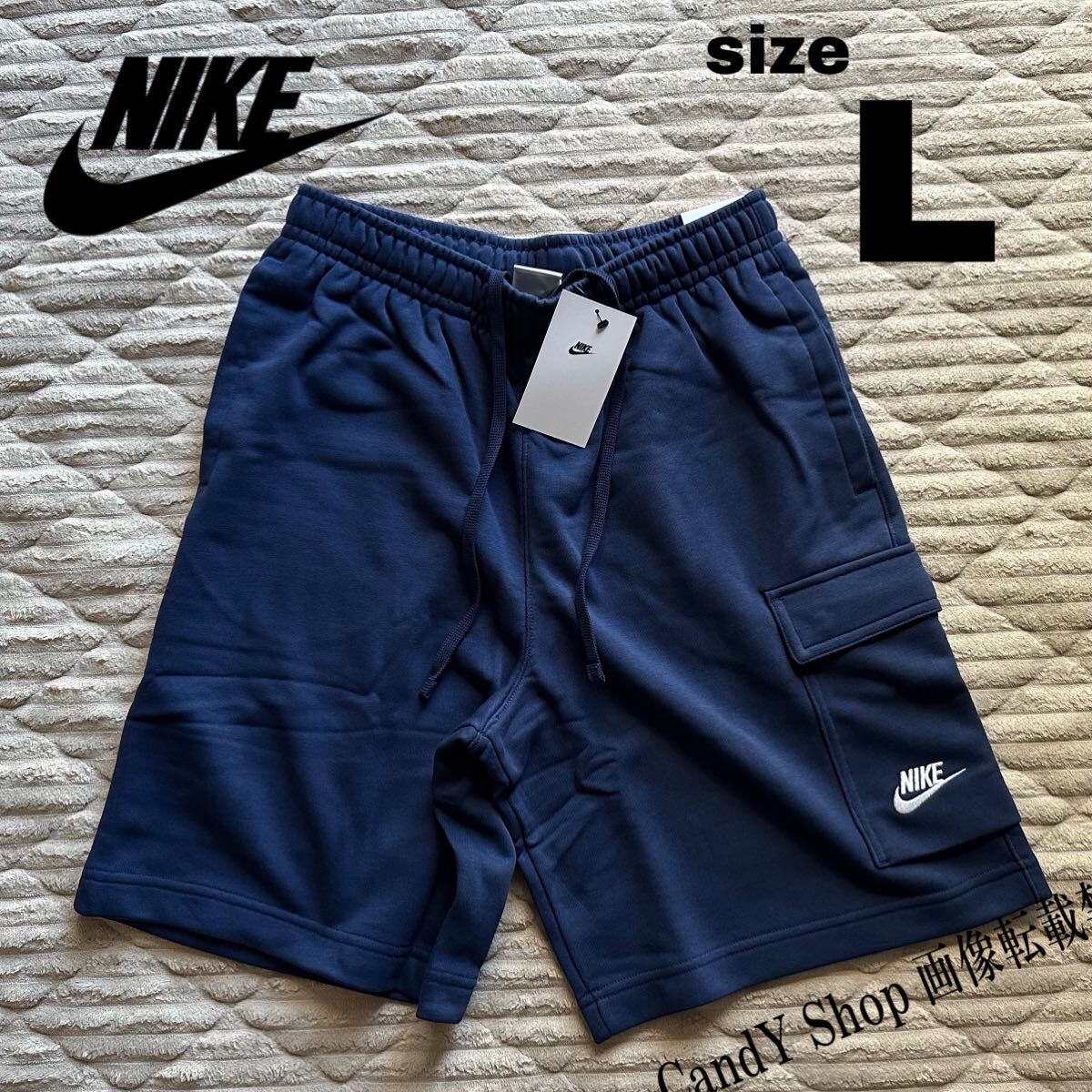 - 送料無料 Lサイズ 新品 NIKE ナイキ ハーフパンツ スウェット ネイビー 紺色 フリース ショートパンツ カーゴパンツ 刺繍 DD7015-410