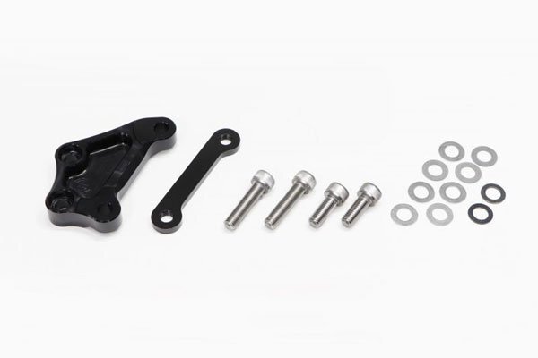取り付けピッチが40mmや65mmのキャリパーを、スタンダードローターサイズに組み合わせるためのキャリパーサポート。
