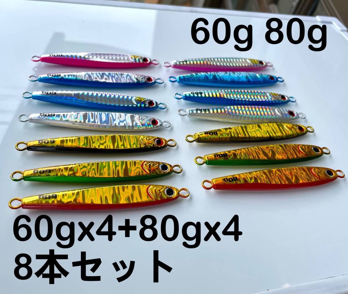 - 8本セット 60g 80g TGベイト風 TGベイト形状 メタルジグ 高比重 タングステン混合 ジギングに 青物 船 オフショア