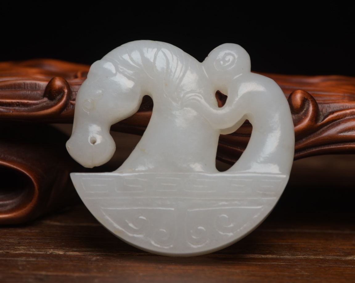 - 【超珍館蔵】和田玉製 細密彫 玉馬 置物 賞物 古賞物 古董品 古美術品 時代物 旧家蔵出 稀少珍蔵品