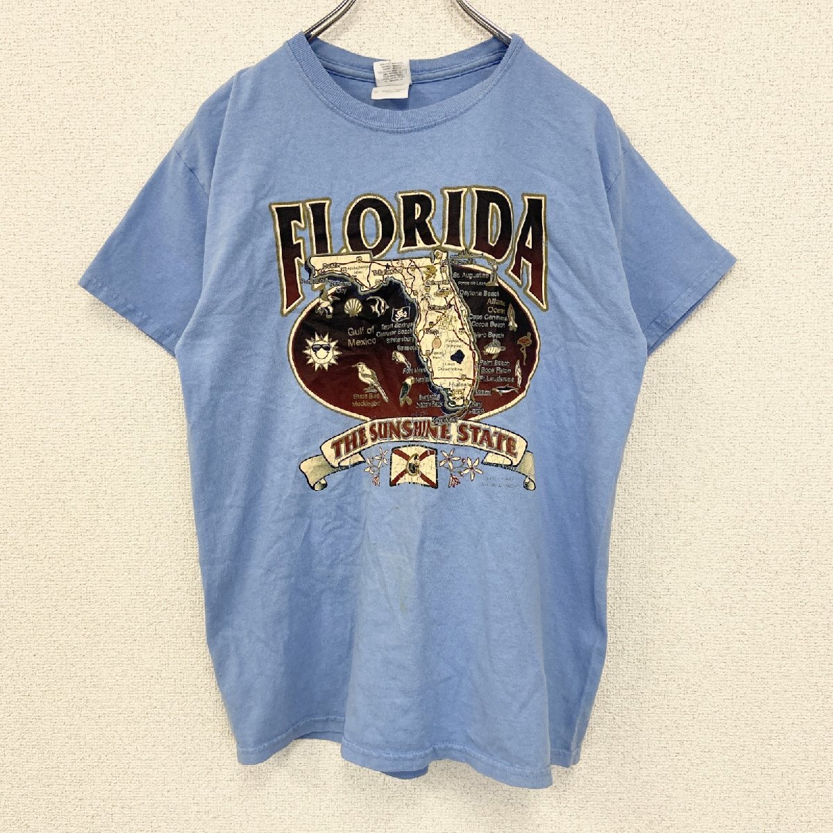 > 古着 used GILDAN ギルダン 半袖プリントデザインTシャツ フロリダ クルーネック レトロ 青 ブルー Mサイズ