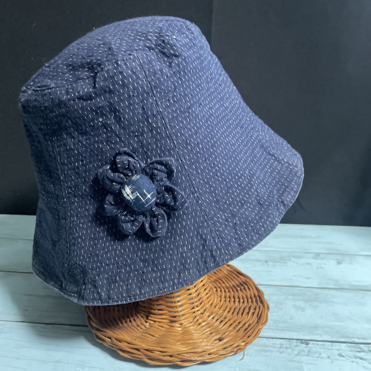 - ☆帽子 ハット 雪ん子 ハンドメイド 古布 型染め 絣 藍染 リメイク 手作り パッチワーク カスリ かすり ハット (A-3186)