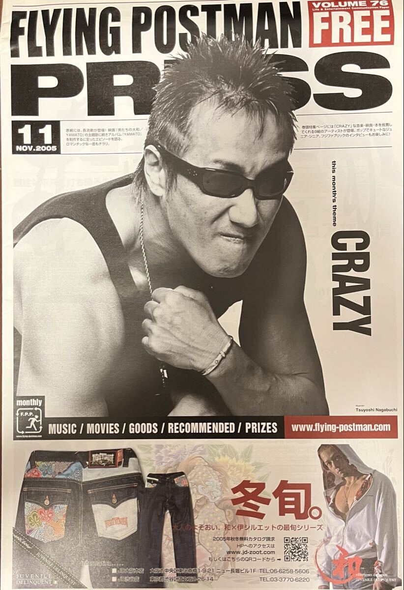 - ★長渕剛★2005.11★FLYING POSTMAN★PRIZES★ジャケット★特集記事あり★大きさ、約横26.5㎝、縦40㎝半分に折って送ります。