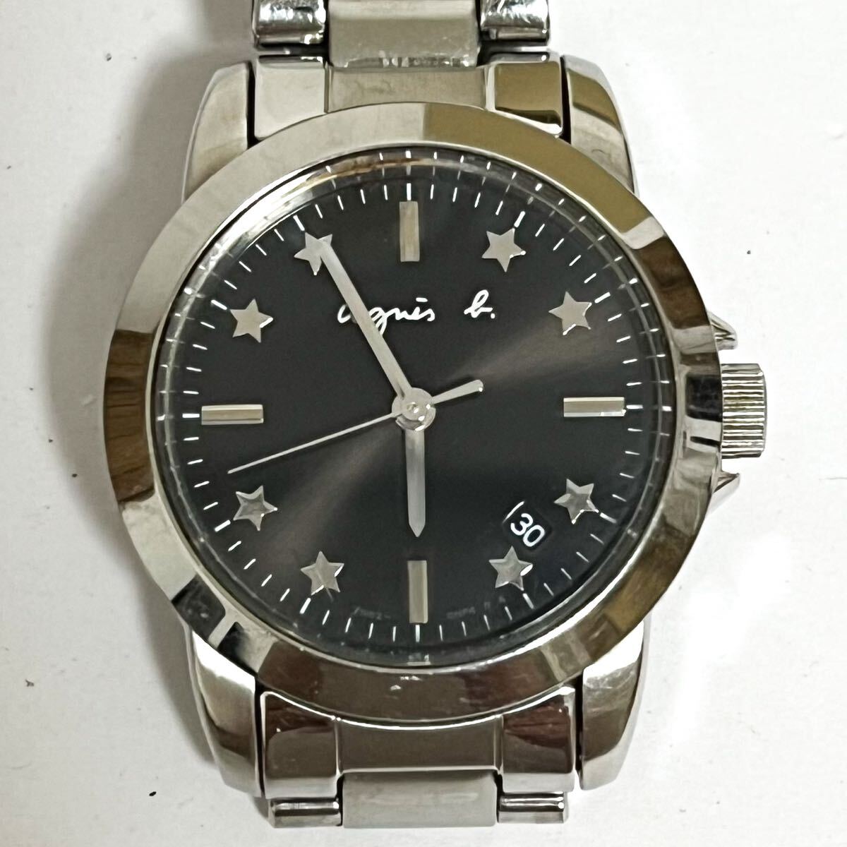 - 和854★ 稼動品 agnes b. 7N82-0FV0 アニエスベー クォーツ 腕時計 ウォッチ 3針 日付 ブラック メタルバンド レディース