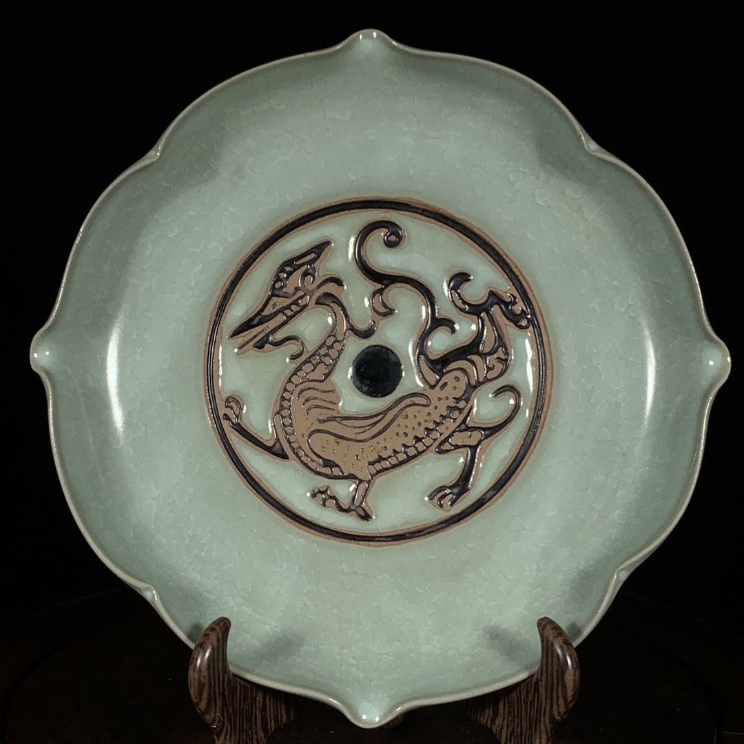 - 【超珍館蔵】宋 古陶瓷品 汝窯 包口 冰裂紋 神獣紋 花口洗 陶藝 古賞物 古董品 古美術品 時代物 旧家蔵出 稀少珍蔵品