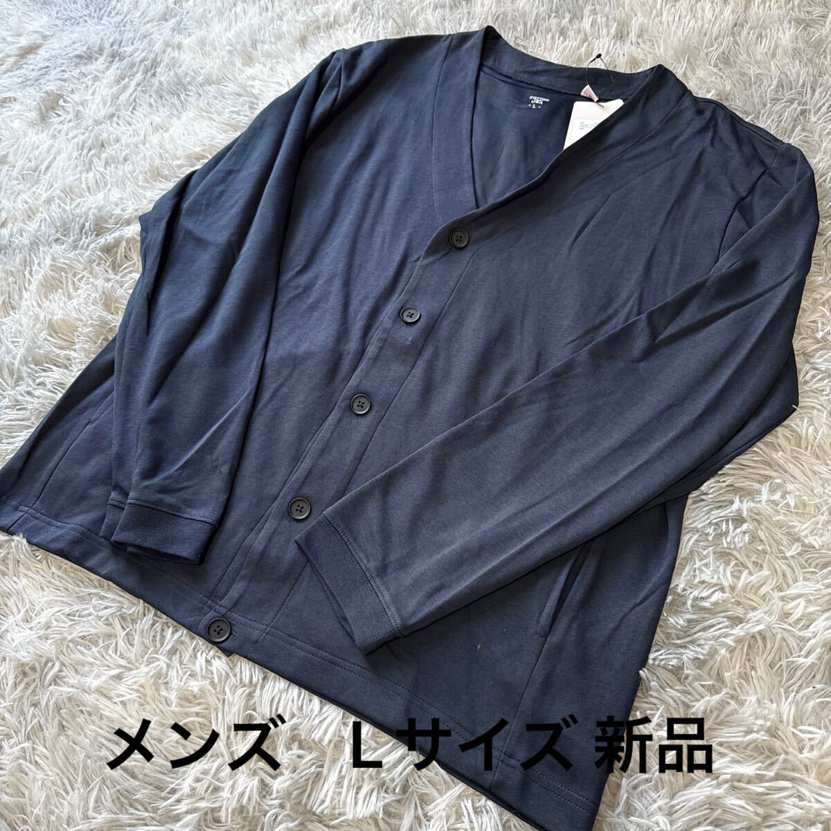 - メンズ 襟がよれにくい毛玉になりにくいポケット付きカーディガン紺L★ゆうパケット配送可能★新品14