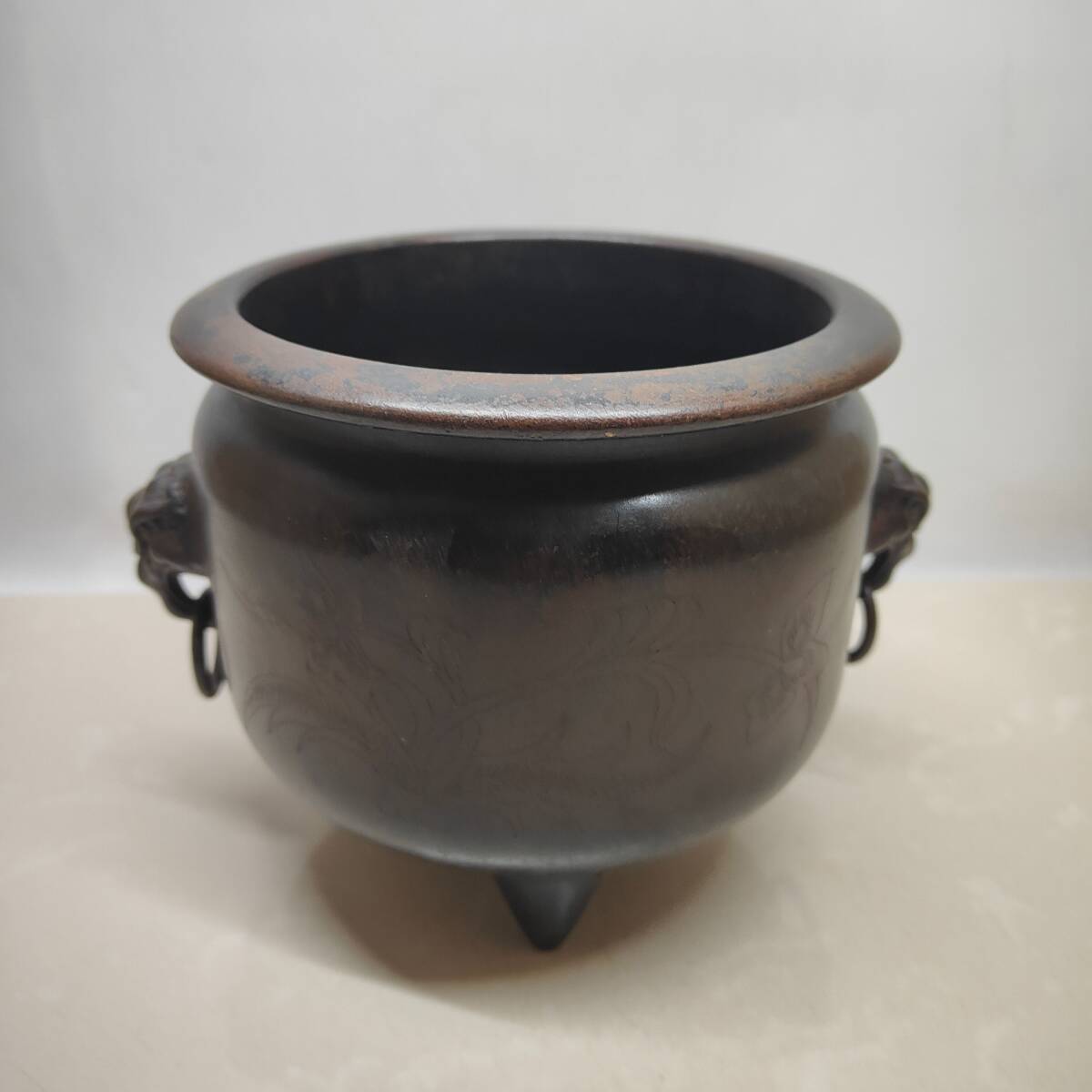 - 『館蔵珍品 紫銅製 塗金 虎頭環 缸炉 置物 賞物』稀少珍蔵品 古賞物 貴重物品 収蔵品 中国古美術 時代物 古董品