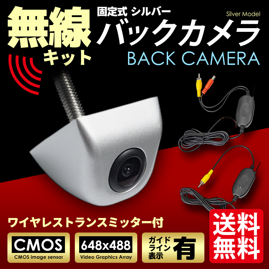 - バックカメラ 灰 グレイ + ワイヤレスセット 高画質 リアカメラ 広角レンズ 汎用 防塵 防水 国内 検査後出荷 ネコポス* 送料無料