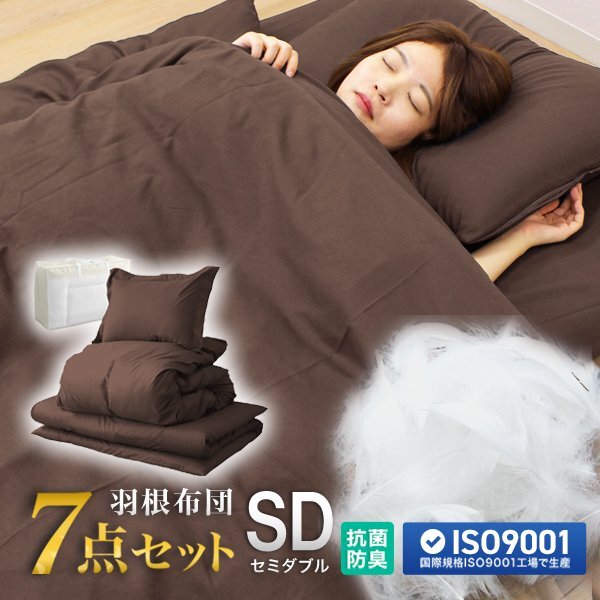 - 羽根布団セット セミダブル 寝具 7点セット ブラウン 敷布団 敷布団カバー 掛け布団 掛け布団カバー 枕 枕カバー 収納ケース 新生活