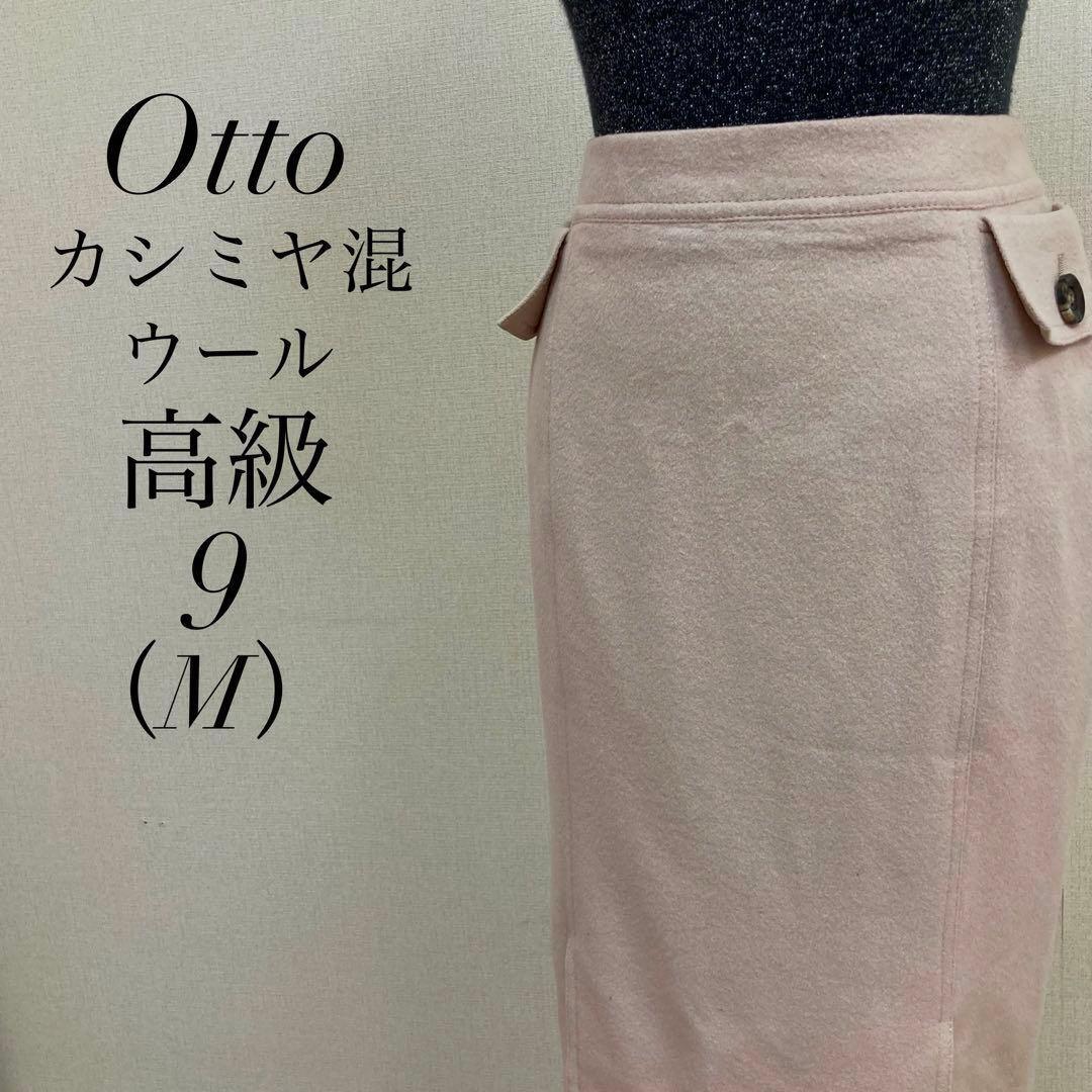 - T Otto オットー ひざ丈タイトスカート 高級素材カシミヤ混ウール フェルト生地 ベージュ オンオフ兼用 9M