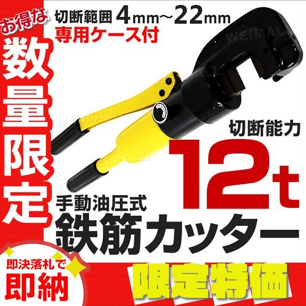 > 【限定セール】専用ケース付き 新品 鉄筋カッター 油圧 バーカッター 能力12t 切断範囲4~22mm 手動 パイプ 鉄筋 カッター 現場 工具