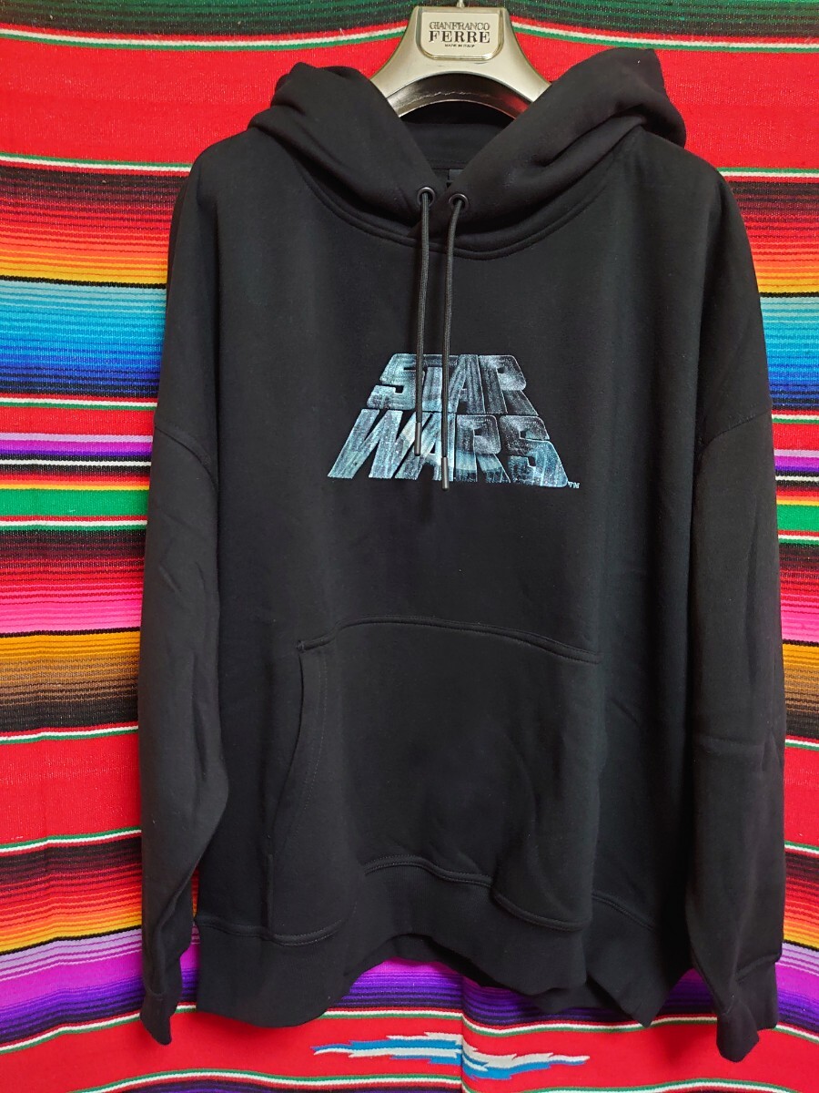 > H&M エイチアンドエム STARWARS刺繍 Death Starバックプリント プルオーバー パーカー 未使用 US XXLサイズ ブラック オーバーサイズ