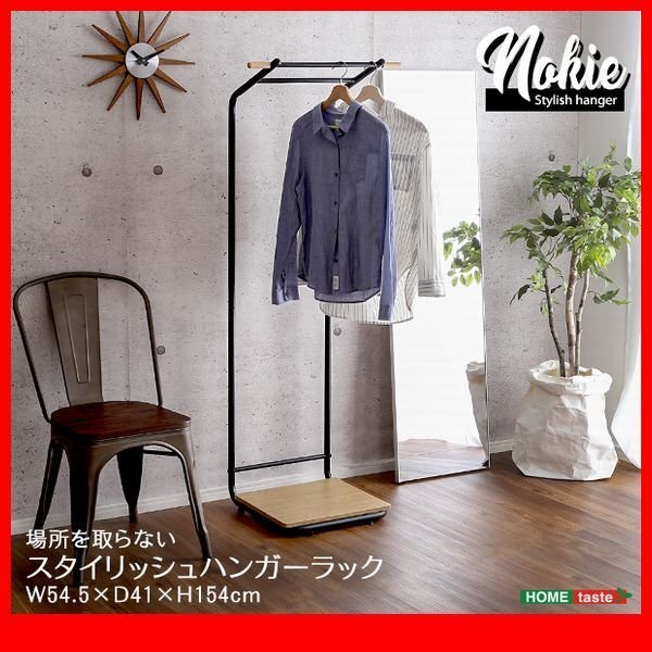 > ハンガーラック★スタイリッシュなハンガーラック スリムDタイプ/ヴィンテージ調 木目調の置台 スチールパイプ 軽量で移動も楽/ブラック/zz